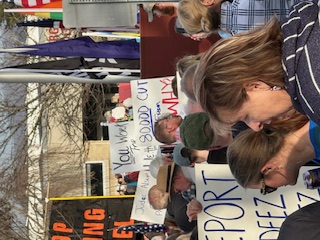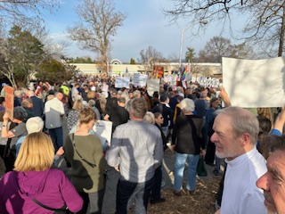 When the auditorium reached capacity, the 1,000+ people outside spontaneously turned into a rally. Someone brought a mic and speaker, people spoke passionately to cheers, and chants broke out. People took photos of themselves with protest signs and captured images of the vibrant crowd. As we milled about, trying to stream the event on our phones, I suddenly felt optimistic, wondering if others shared my feeling. Then, from behind me, a woman confirmed, “This gives me hope.”